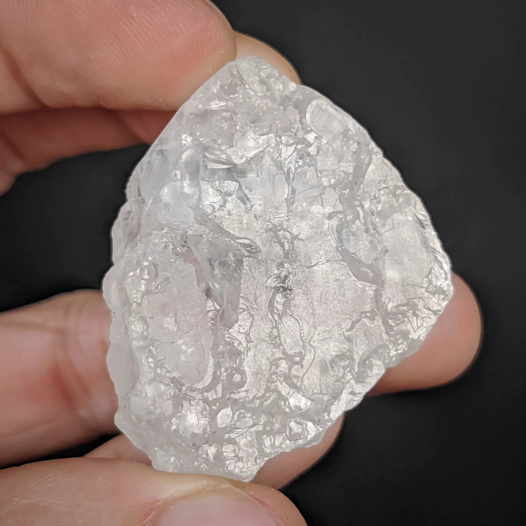 Exemplar do mineral topázio, de cor incolor a com a presença de minúculas impurezas. Este item apresenta 4,3 cm. É chamado comercialmente de "topázio branco" e foi associado, em algumas abordagens místicas, como a pedra do ano de 2025.